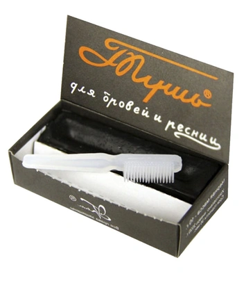 Тушь в советские времена была одна, и она совсем не похожа на современную. Она продавалась в плоской небольшой коробочке с щеткой, напоминающей зубную. Сама краситель имела твердую консистенцию, поэтому перед применением ее необходимо было смочить. Удивительно, но вместо добавления капли воды девушки предпочитали плюнуть в коробку. Отсюда и название.