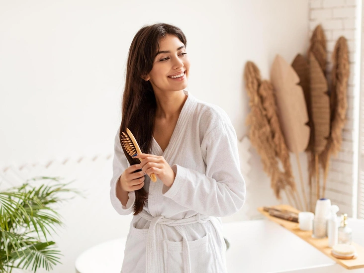 Если волосы сильно запутаны, сначала разделите их руками. И, только когда сложные узлы разделены, стоит взять расческу. При расчесывании нужно придерживать пряди у корней или посередине длины, чтобы случайные рывки не деформировали и не разрушили капсулу (читайте также: Остановите старение: 6 советов по уходу за волосами, которые скинут вам несколько лет).