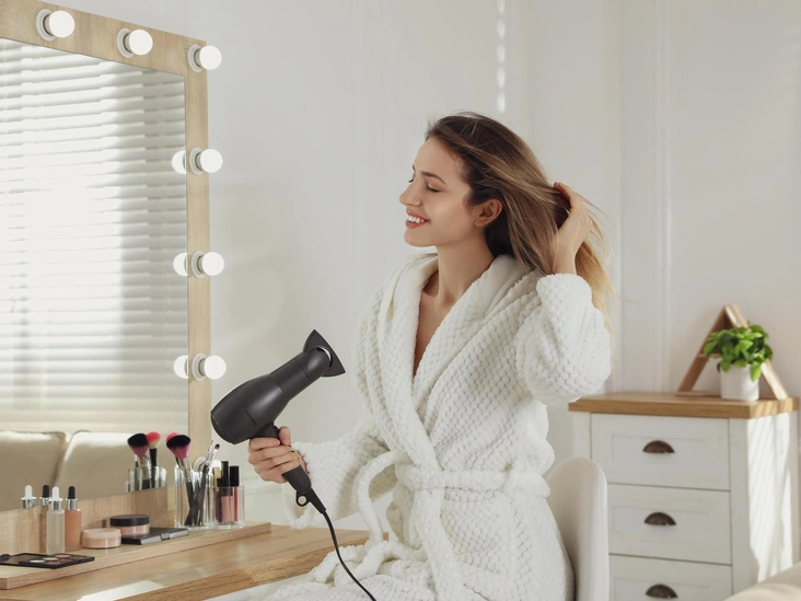 Если есть необходимость в использовании фена, избегайте высоких температур и держите устройство на расстоянии 20-40 см от волос.