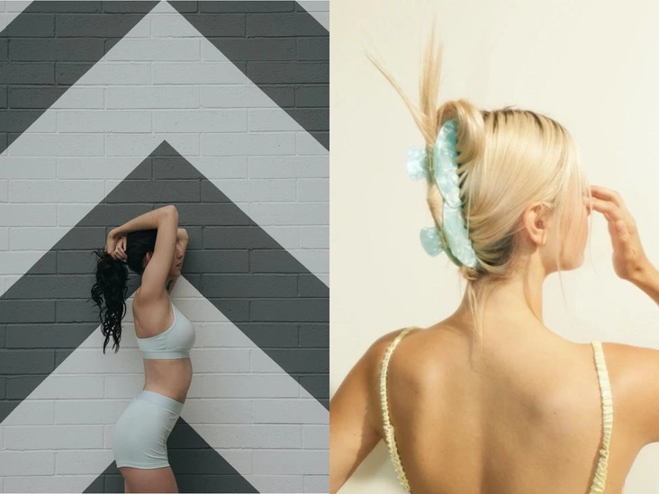 Во время тренировки главное — убрать волосы от лица, считают дерматологи. Прикосновение потных прядей к потной коже может вызвать раздражение или высыпания. Челку зафиксируйте с помощью ободка или повязки и сделайте удобную нетугую прическу: пучок, косу, конский хвост. Для хвоста пригодятся мягкая тканевая резинка и резинка-пружинка, они не повреждают пряди. Пучок можно закрепить заколкой-крабом — как раз такие из экологичного биоразлагаемого ацетата целлюлозы выпускает российский бренд Salt & Wave.