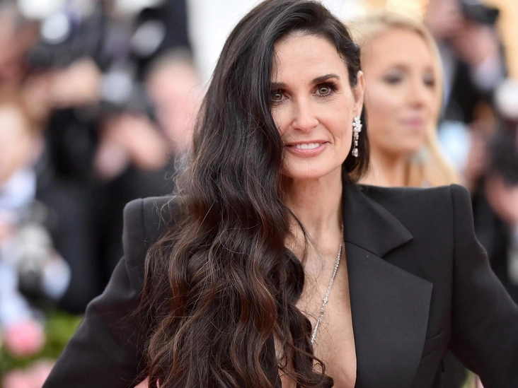 Деми Мур чаще всего носит прямые волосы, поэтому покорила нас образом с текстурными локонами в тренде mermaidcore. Такие локоны можно накрутить на плойку или стайлер, а затем сбрызнуть текстурирующим спреем.