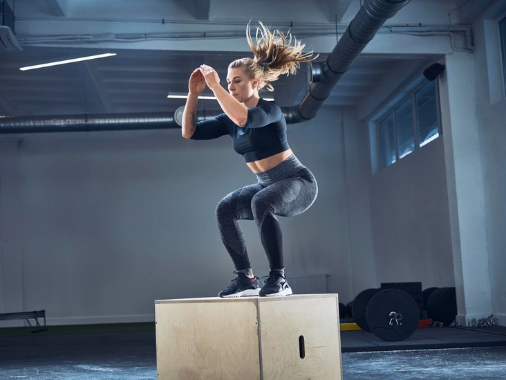 С запрыгиванием на коробку. В упражнении уже заложен прыжок. Но усложнение этого действия увеличивает мышечный тонус. Выйдя из упора лежа, запрыгните на коробку с одной стороны и спрыгните с другой.