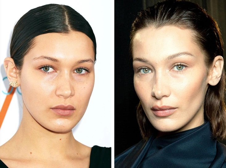 Модель и одна из самых красивых женщин в мире сделала ринопластику в 14 лет. В прошлом году девушка призналась, что жалеет о ринопластике. Модель сказала, что на данном этапе она бы не стала менять нос, доставшийся ей от предков. Также Белла Хадид, вероятно, дополнила изменения в объеме коррекции положения бровей, что также порой вносит существенные позитивные изменения в восприятии лица.
