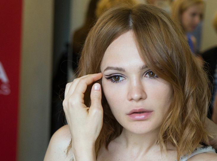 В макияже ─ его специально для Дарьи придумала и воплотила визажист Sisley Анна Кочеткова ─ главный акцент сделан на глаза. Как повторяем? Прежде всего, нужно выровнять тон кожи при помощи тонального крема Phyto-Teint Eclat (для мейк-апа актрисы был использован оттенок «слоновая кость») ─ его светоотражающие частицы придадут коже сияние и яркость. Кремовые румяна Phyto-Blush «Лепесток» мягко вбейте подушечками пальцев, чтобы подсветить скулы. В качестве финиша нанесите рассыпчатую пудру с экстрактом гибискуса Phyto-Poudre Libre, которая ложится на кожу легкой вуалью. Подводкой-фломастером So Intense Eyeliner проведите четкую плотную стрелку вдоль линии роста ресниц верхнего века и повторите ее по линии подвижного, сделав в два раза тоньше. По желанию, используйте кайал, чтобы затемнить слизистую изнутри для более драматичного эффекта. Накрасьте ресницы подкручивающей тушью So Curl ─ используйте минимум два слоя и тщательно проработайте нижний ряд, чтобы добиться легкого эффекта «паучьих лапок». Увлажните губы ухаживающим блеском Gloss (используем оттенок Beige Rose) ─ образ бунтарки готов.