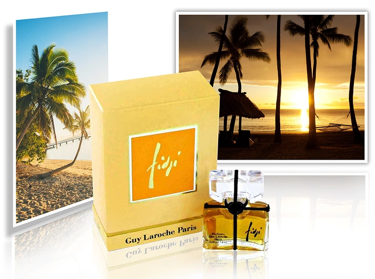 Название аромата Fidji от Guy Laroche, полностью отражает его концепцию: «Женщина — это остров, а Fidji — ее аромат». Название этого парфюма, созданного в 1966 году, имело такой же успех, как и его композиция. Острова Фиджи — символ простой и счастливой жизни в тропическом климате и настоящий соблазн оказаться в месте, далеком от цивилизации и ее проблем. Само его произнесение напоминает вздох или шум волны. Аккордами ириса, туберозы, жасмина, розы, гвоздики, гальбанума и пачули Fidji обещает возврат к природе, беспечности и утонченной экзотике (читайте также: «Парфюмерные традиции Азии и ароматы, которые расскажут о них лучше всего»). Это искушение райскими кущами во флаконе во всем мире было буквально «нарасхват».