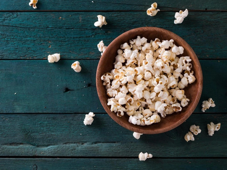 Попкорн богат клетчаткой и даже содержит немного белка. Порция поркорна весом 85 г (около 3 чашек), приготовленного без масла, содержит 4 грамма клетчатки, почти 3 грамма белка и 110 калорий, согласно данным Министерства сельского хозяйства США. Эта комбинация делает его идеальной закуской для выносливости. Попкорн — это цельное зерно, и 3 чашки — это значительная порция, особенно если сравнивать его с другими хрустящими солеными закусками, такими как чипсы.
