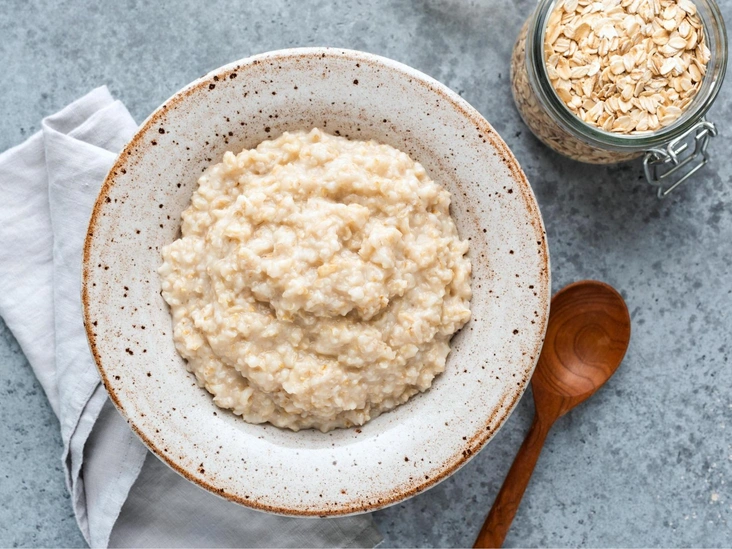 Овсянка — это сложный углевод, который помогает насытиться, при этом не повышая уровень сахара в крови. Кроме того, это отличный источник клетчатки, а употребление большего количества клетчатки помогает контролировать свой вес. Хотя мы обычно думаем об овсяной каше как о продукте для завтрака, небольшая миска также может стать сытной и вкусной закуской. Чтобы сделать ее более удобной, держите на столе пару пакетиков несладких овсяных хлопьев быстрого приготовления или сделайте блюдо сами, заварив овсяные хлопья на ночь в стеклянной банке.