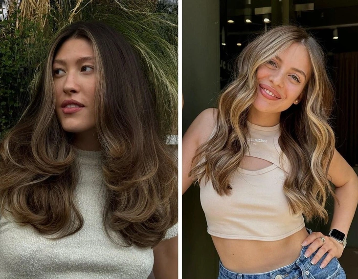 Лучшей базой для окрашивания «Vintage wood» станут темно-русые или каштановые волосы. Основная задача мастера — лишь усилить сияние и блеск волос за счет легкого осветления прядей, создавая мягкие солнечные переливы. Такое окрашивание можно сделать и самостоятельно дома, если у вас есть осветляющий спрей. За счет того, что оттенок выглядит натурально, отрастающие корни будут едва заметны, и можно будет обойтись без частых посещений колориста (читайте также: Самые модные окрашивания на осень 2024: 7 вариантов, которые хочется повторить).