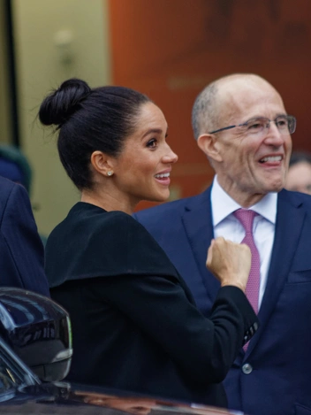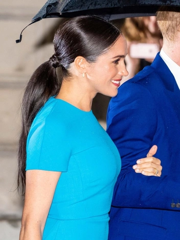 Низкий конский хвост Меган на затылке, аккуратно перехваченный одной из прядей, пресса называла «ультрагладким», восторгаясь непосредственностью прически. Широкая улыбка герцогини явно показывала, что она знала, что отлично выглядит — ведь тщательно исполненная гладкая укладка не портится даже под дождем, который шел в тот день.
