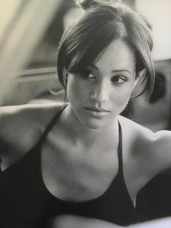 На заре актерской карьеры Меган не только выщипывала брови, но и делала прически сообразно моде 2000-х — многослойные стрижки и убранные назад или наверх пряди в сочетании с длинной челкой.