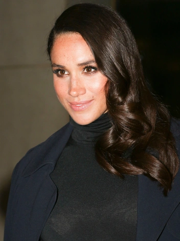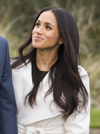 На объявлении о помолвке принца Гарри и мисс Маркл после года знакомства пары избранница Его Высочества придерживалась своего фирменного стиля: распущенные длинные волосы с многослойными легкими волнами.