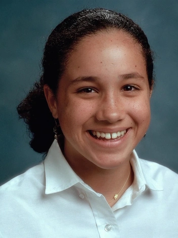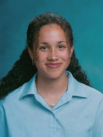 В школьные годы Меган и собирала волосы, и носила их распущенными, но ее локоны неизменно оставались с натуральной кудрявой и пушистой текстурой, которую она сейчас редко демонстрирует.