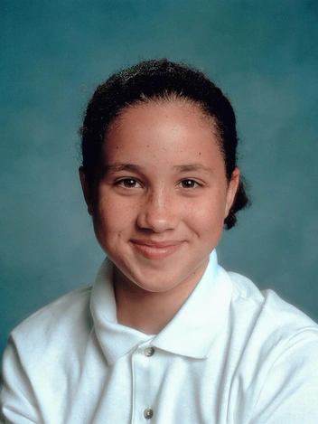 Сейчас в этой сложно поверить, но в детстве у Меган была челка. Затейливо уложенная набок или непосредственно растрепанная — она придавала образу юной леди характерную нотку.