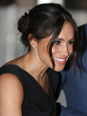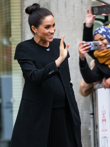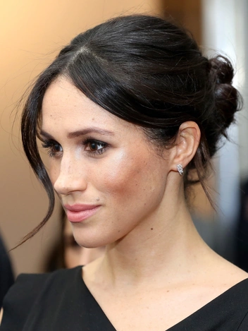 Возможно, самый необычный из столь любимых Меган пучков герцогиня продемонстрировала во время первой беременности. Она сделала аккуратный объемный пучок на макушке, гладко зачесав к нему волосы и не оставив привычных прядей у висков.