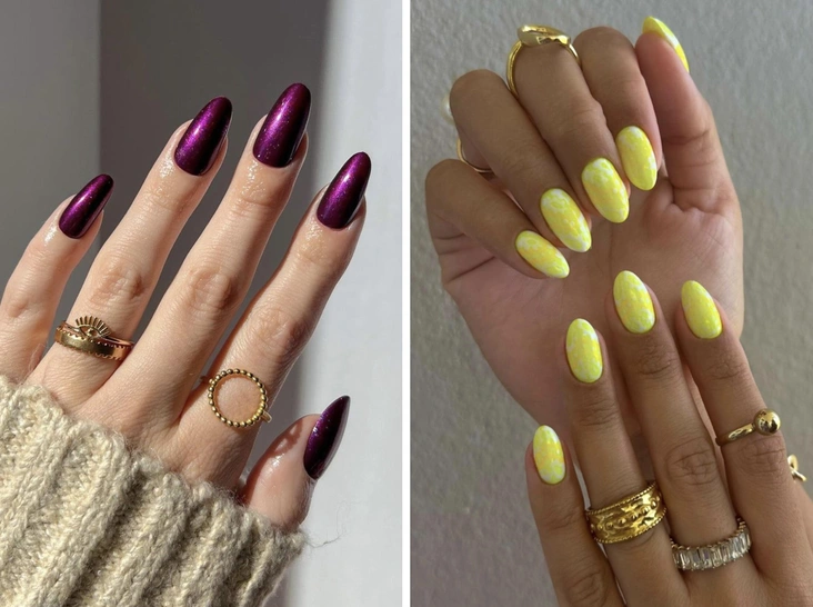Фиолетовый лак с перламутровым сиянием не просто выглядит неактуально, но и добавляет возраст своей обладательнице. Этот цвет старит руки, из-за чего они выглядят неухоженными, даже если вы регулярно посещаете мастера по маникюру.
