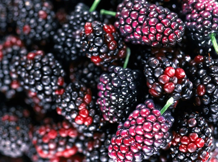 Похожая на ежевику ягода начинает зреть в середине июля и есть ее рекомендуют прямо с куста. Не надейтесь, что сможете насобирать шелковицы впрок. Эти ягоды имеют свойство крайне быстро портиться и в собранном виде мгновенно теряют свой вкус и невероятный аромат. Шелковица — рекордсмен по содержанию калия, ее особенно рекомендуют употреблять людям склонным к болезням сердца и желудочно-кишечного тракта.