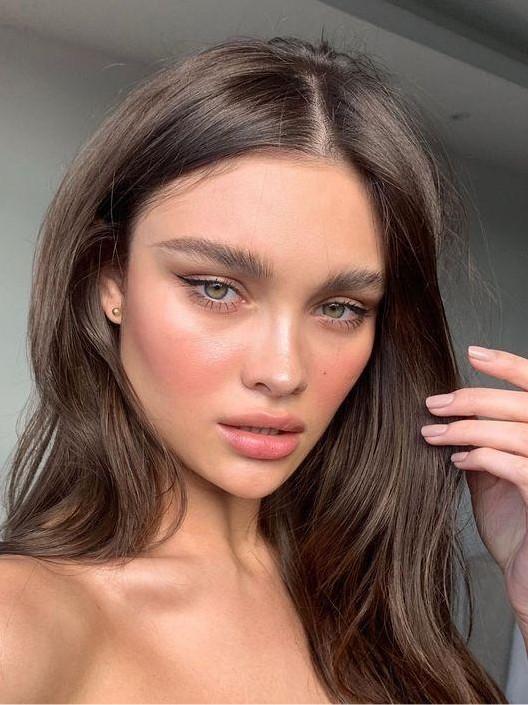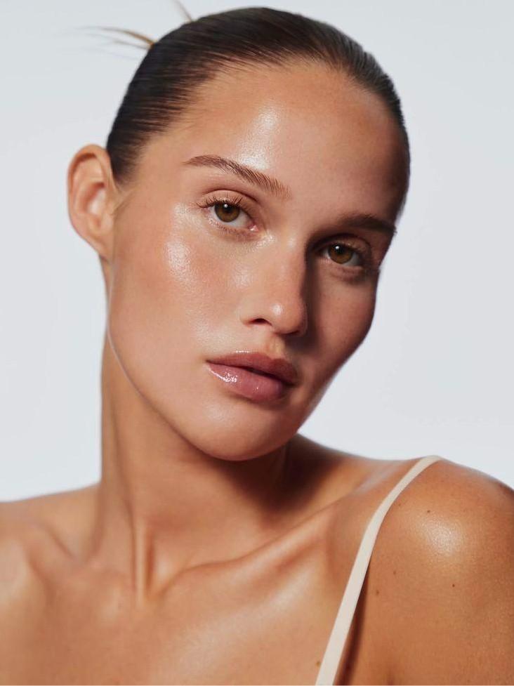 Для этого образа основа с легким сиянием — ключевой элемент. Тональную текстуру с увлажняющим эффектом наносят влажным спонжем: так поверхность получается гладкой, а свечение — мягким и равномерным. Кремовые румяна и кремовый скульптор поддерживают общий пластичный ритм и не нарушают влажность кожи (читайте также: Ешьте и худейте: 8 продуктов, которые нужно добавить в рацион зимой, чтобы быстро сбросить вес).