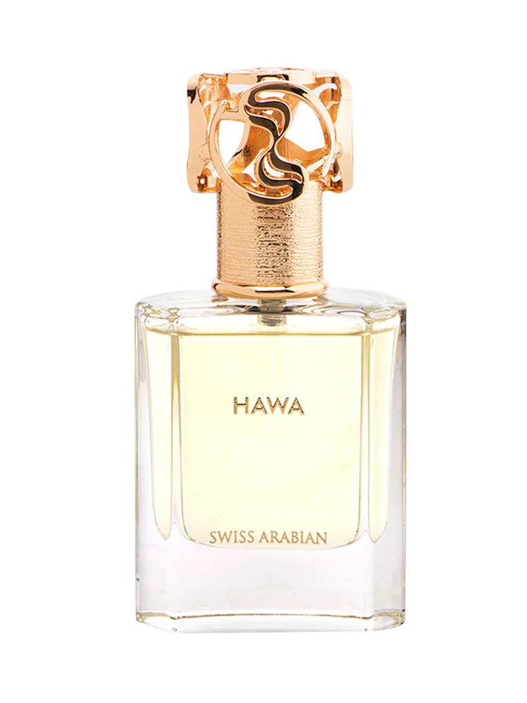Восточный цветочный аромат Hawa, Swiss Arabian с нотами кардамона, сливы, бергамота, мандарина, иланг-иланг, жасмина, кашмерана, розы, флердоранжа, кедра, пачули, сандала, мирры, дубового мха, амбры, ванили, мускуса