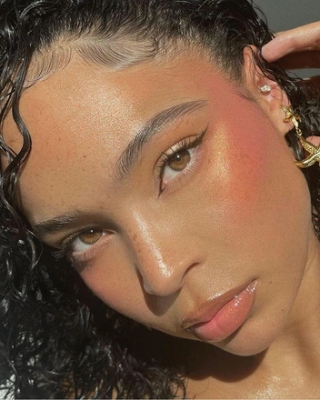 Сочетание персиковых и розовых румян выгодно подчеркивают загар на коже — причем как натуральный, так и созданный с помощью бронзера или автозагара. Градиент можно сочетать с сияющей кожей, нейтральным макияжем глаз и губ (читайте также: 5 трендов «розового» макияжа, которые хочется повторить). Для создания румянца можно использовать даже очень яркие оттенки, к которым у вас не тянется рука во время создания классического макияжа.