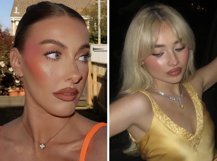 Сочетание персиковых и розовых румян выгодно подчеркивают загар на коже — причем как натуральный, так и созданный с помощью бронзера или автозагара. Градиент можно сочетать с сияющей кожей, нейтральным макияжем глаз и губ (читайте также: 5 трендов «розового» макияжа, которые хочется повторить). Для создания румянца можно использовать даже очень яркие оттенки, к которым у вас не тянется рука во время создания классического макияжа.