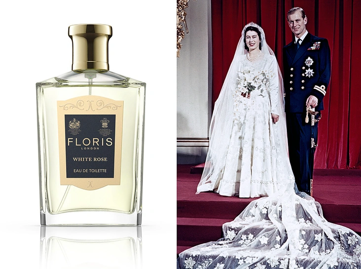 Еще одна поклонница Floris в британской королевской семье. В 1947 году Елизавета, тогда еще принцесса Лилибет, выходила замуж за своего дальнего родственника, принца Филиппа (читайте также: «Супруг ее величества: Елизавета II и Филипп»). На ней было романтичное платье с цветочной вышивкой от дизайнера Нормана Хартнелла и, вероятнее всего, аромат White Rose («Белая роза») от Floris. Преданной клиенткой парфюмерного дома Елизавета была уже тогда, и именно эта, созданная в 1800 году, туалетная вода с нотами гвоздики, белой розы и альдегидов, была ее любимой в молодости.