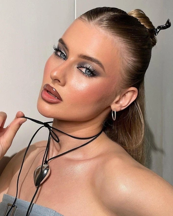 Пожалуй, самый яркий и торжественный макияж из всей подборки. Сияющие смоки сделают глаза очень выразительными и с легкостью станут акцентным элементом всего образа. Для начала понадобится плотно нанести на веко толстым слоем кремовый пигмент в черном или шоколадном оттенке (читайте также: 5 ошибок при нанесении теней, которые совершают все (и вы тоже)). Затем уверенными движениями растушевать наверх к вискам и протянуть до нижнего века. Осталось добавить самое важное — блестки. Для этого на еще влажный пигмент быстрыми движениями нанесите блестки. В завершение густо прокрашиваем ресницы тушью — неотразимый образ готов!