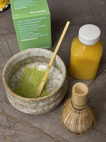 Разведите половину чайной ложки порошка матчи в горячей (но не кипящей) воде, добавьте немного свежевыжатого апельсинового сока и ложку меда.