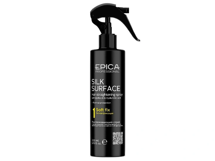 В холодное время года необходимо ввести в свою бьюти-рутину несмываемые средства для ухода, которые защитят волосы от агрессивного воздействия окружающей среды. Разглаживающий спрей Silk Surface от Epica Professional с термозащитным комплексом восстанавливает структуру волос, не утяжеляя их. Продукт делает волосы более послушными, гладкими и мягкими — в составе за это отвечают гиалуроновая кислота и масло жожоба.