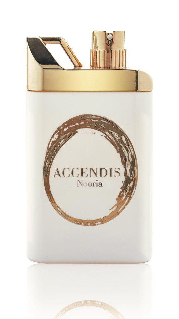 Восточно-цветочный аромат Nooria, Accendis с нотами фруктов, жасмина, иланг-иланг, герани, гваяковой древесины, пачули, сандала, амбры, бобов тонка, ванили и мускуса