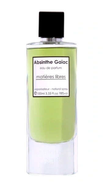 Кожаный аромат Absinthe Gaïac, Panouge с нотами абсента, листа фиалки, мускатного ореха, кожи, розы, гваяковой древесины, амбры, пачули, ветивера, мускуса