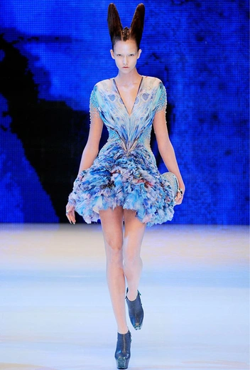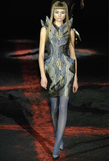 Показ «Plato`s Atlantis» в 2010 году был видением дизайнера возможного апокалипсиса: модели, облаченные в змеиную кожу с инопланетными прическами и в легендарных туфлях «Броненосец» на 30-сантиметровых каблуках, олицетворяли полулюдей-полурептилий будущего. Это было первое шоу, которое транслировалось онлайн — очередное наследие, ставшее сегодня привычной нормой.