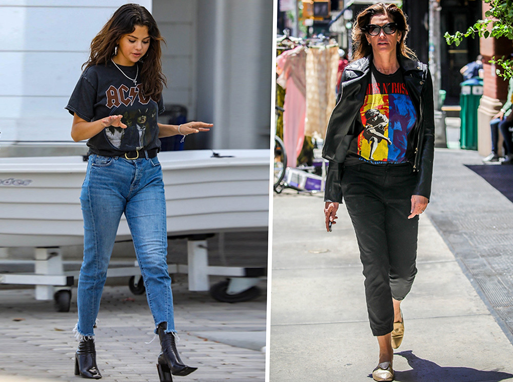 Ностальгии подвержены не только мы с вами, но и модные бренды. Возвращение брюк со штрипками, кроп-топов и спортивных костюмов мы уже пережили, а возвращение футболок с кумирами детства — переживаем прямо сейчас. Среди них особой популярностью пользуются вещи с постерами культовых рок-групп прошлого столетия — AC/DC, Guns ‘N Roses, Metallica. Сегодня их носят не только те, кто застал 90-е во взрослом возрасте, как Синди Кроуфорд, но и те, кто в «лихие» только родился — как, например, Селена Гомес. Или Зейн Малик: группа The Rolling Stones, в футболке с логотипом которой он появился, старше артиста в два раза. Все скучают по 90-м!