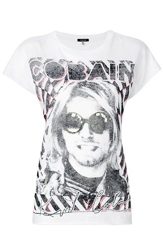 Погрузиться в сладкие, но несбыточные мечты о детстве предлагаем и вам — благо, что выбор футболок с кумирами прошлого сегодня широк, как никогда. Носить эти стилизованные под концертный мерч вещи рекомендуем с другими модными приметами времени — широкими джинсами, словно украденными из папиного гардероба, и плечистыми жакетами — как из гардероба маминого. Пара кроссовок или ботильонов на устойчивом каблуке, пара солнцезащитных очков и кепка на макушку — и путешествие во времени можно считать свершившимся!