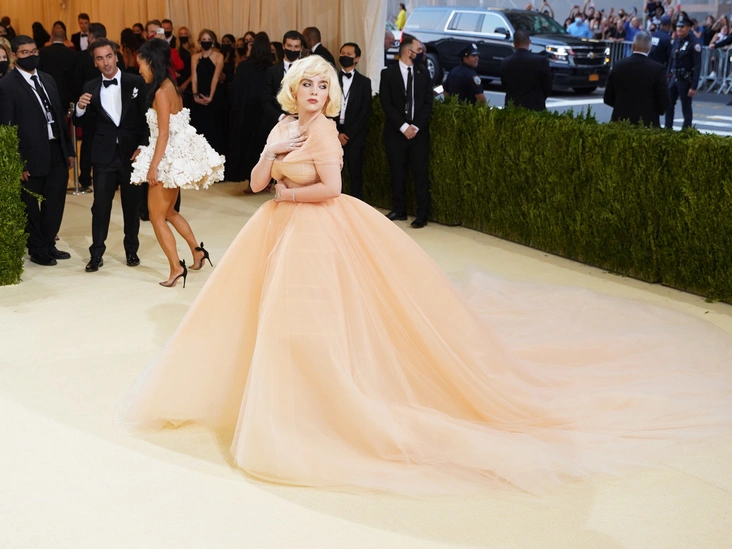 На Met Gala Билли Айлиш по-настоящему удивила всех присутствовавших. Певица, прежде скрывавшаяся под оверсайзом, красившая волосы в черный и зеленый и делавшая эксремальный маникюр кислотных оттенков, появилась в платье в духе старого Голливуда и с классической прической. Бунтарский дух девушки выдали только два ряда колец (в том числе фаланговых) на пальцах. Персиковое платье Oscar de la Renta с корсетным лифом и пышным подолом стало предвестником других женственных нарядов, в которых Билли будет появляться на мероприятиях. Почему же певица пошла на это экстремальное преображение? Все из любви в животным. Айлиш согласилась облачиться в бальный наряд Oscar de la Renta, если марка перестанет использовать мех животных в своей работе.