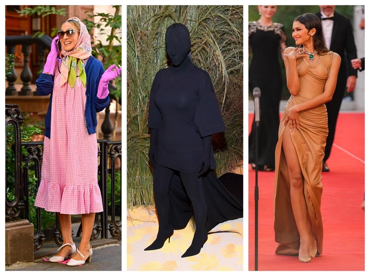 Спустя два десятилетия «Секс в большом городе» вернулся — но не с очередным сезоном, а с совершенно новым сериалом под названием «И просто так». Поклонники стайлинга Патриции Филд весь год обсуждали наряды, которые можно было рассмотреть на промо-снимках, и лишь к декабрю первые серии наконец смогли посмотреть широкие массы. Наряды Кэрри Брэдшоу по-прежнему слывут довольно сумасбродными. Об одном из них, с участием розового платья, кардигана, шелкового платка на голове и фиолетовых перчаток для мытья посуды, в аккаунте EveryOutfitOnSATC написали «это it-girl, превратившаяся в серийную убийцу, в маскировке домработницы», припомнив марки Batsheva и Gucci. Да, это определенно то, чего ждал весь модный мир.