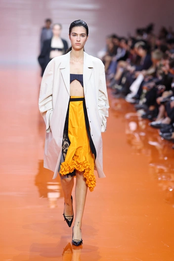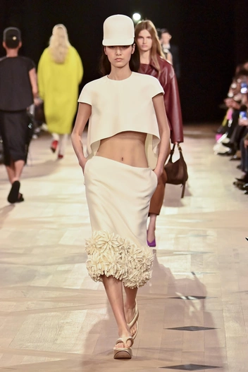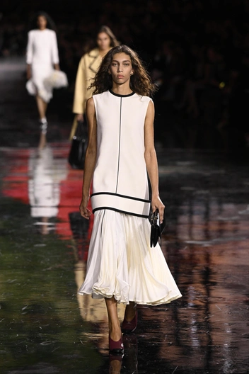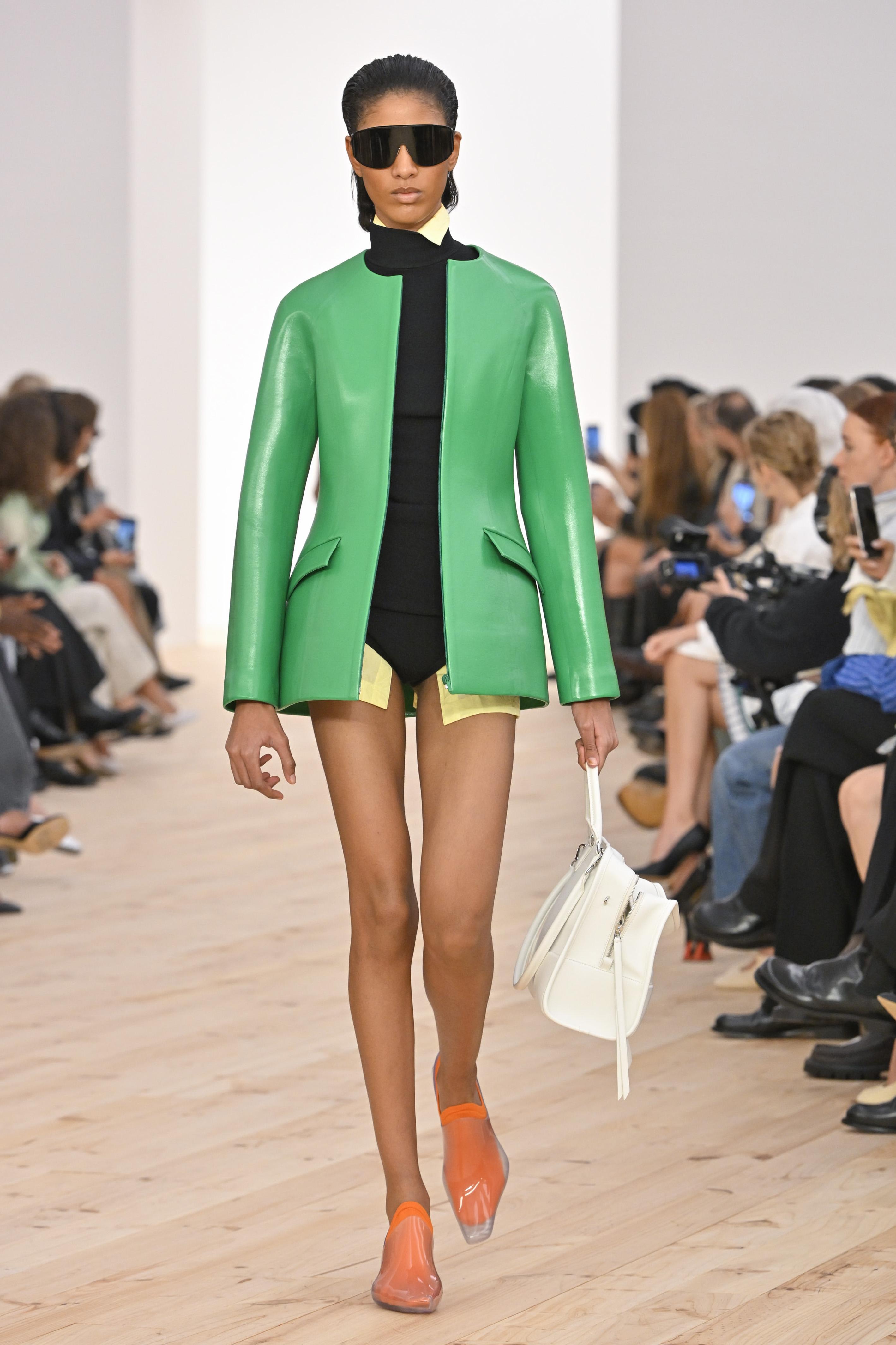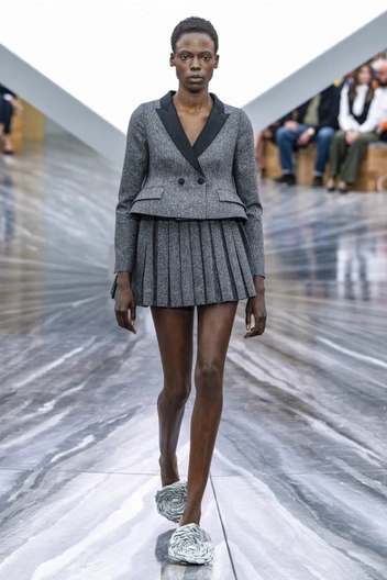 Верхняя одежда лета 2026 стала ультракороткой и максимально графичной. Жакеты до линии талии или чуть выше вдохновлены винтажными сэмплами 1950‑х, откуда Джонатан Андерсон и черпал вдохновение для укороченной версии культового Bar. Особенно эффектно, когда такой жакет надевают не с брюками, а с тем самым мини. Форма, проверенная временем, настроение — новое.