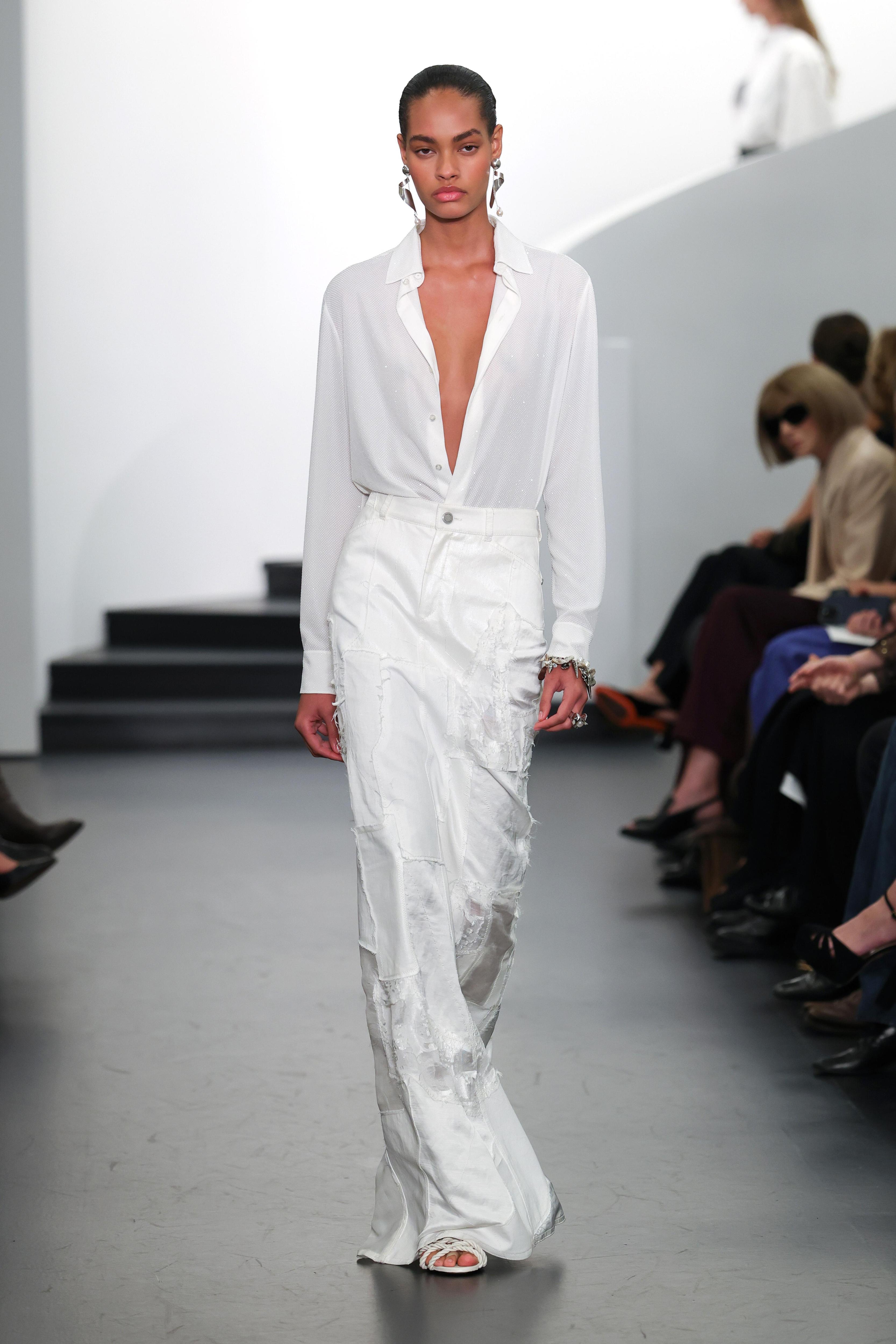 Важно, что прозрачность больше не про вызов обществу и не про желание эпатировать, это современная натуралистика: тонкая майка, просвечивающая рубашка, юбка‑колонна из сетки — все это не требует идеального тела, только готовности принять свое таким, какое оно есть.