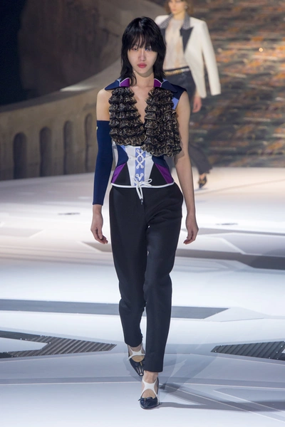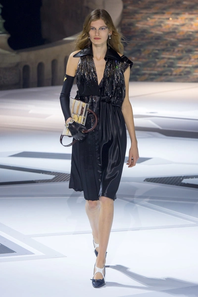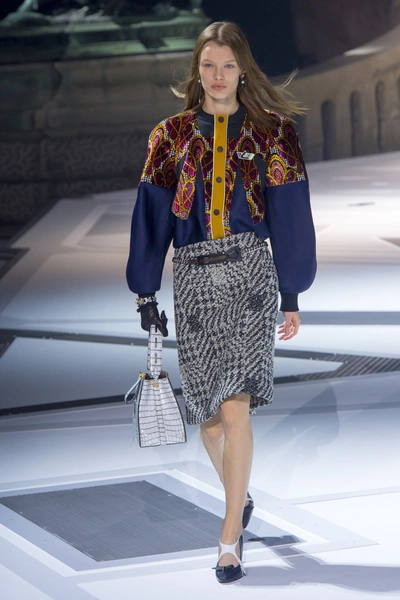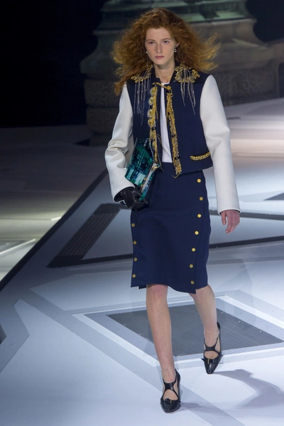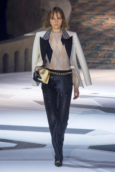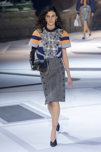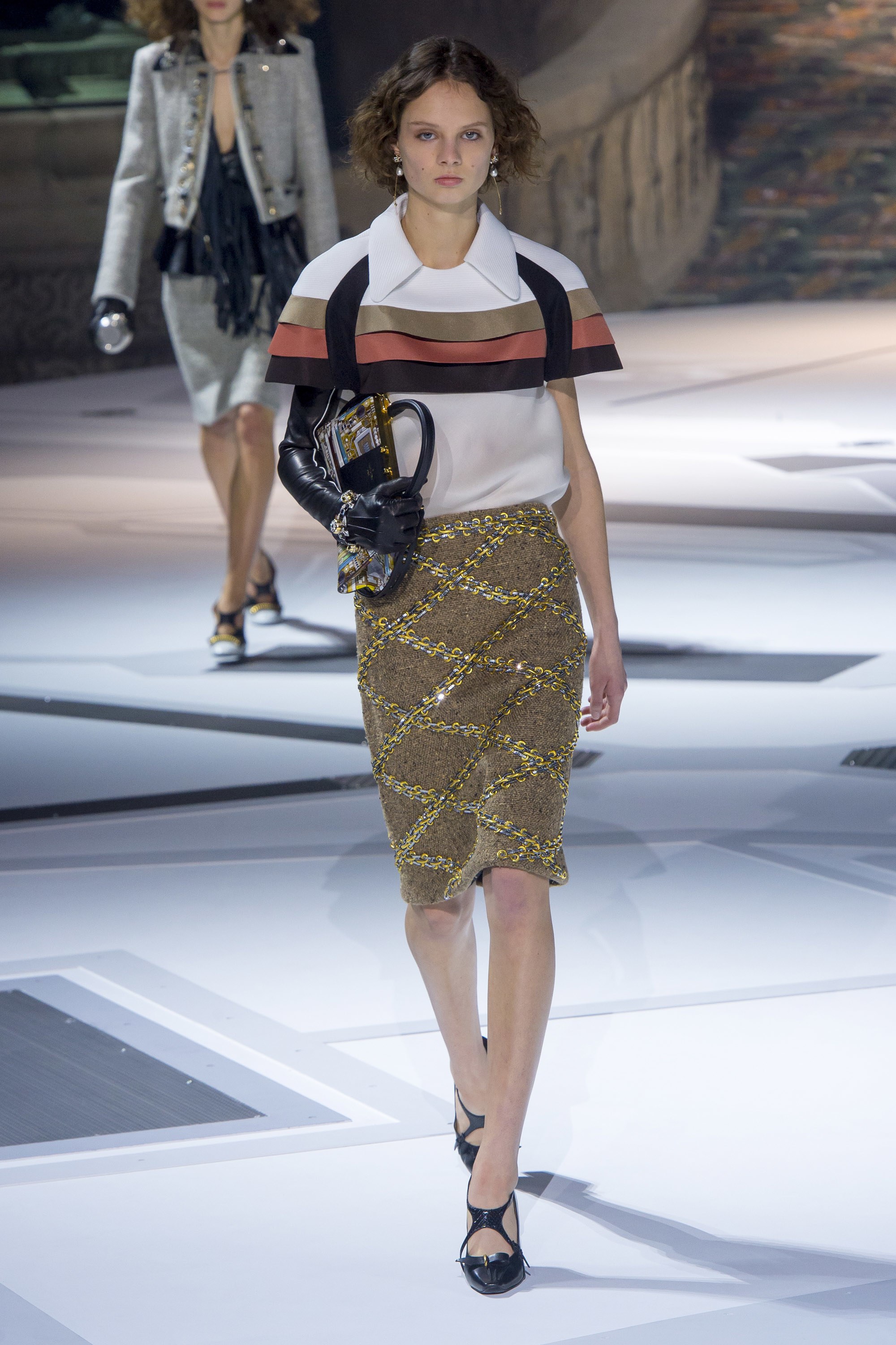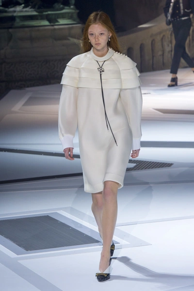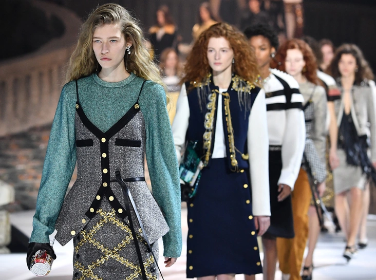 По традиции последним показом Недели моды в Париже стал показ новой коллекции Louis Vuitton. Еще одна традиция — локация шоу — ни много ни мало, а сам Лувр. В октябре дефиле прошло в Pavillon de l'Horloge, история которого насчитывает уже четыре с лишним века, на этот раз — во дворе Cour Lefuel, превращенного на время модного действа, насколько это вообще возможно в стенах Лувра, в космический корабль.