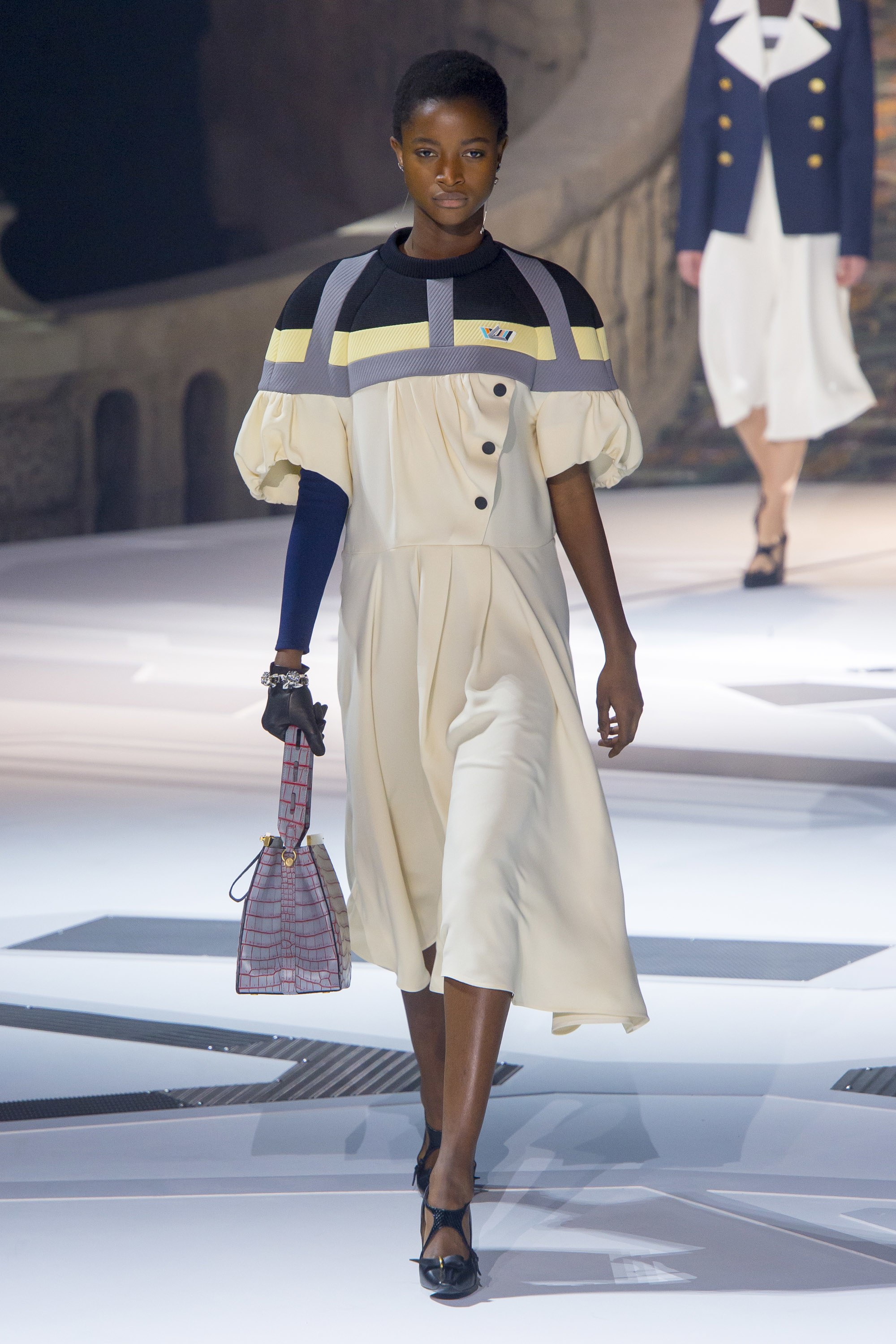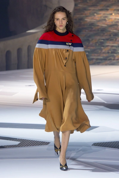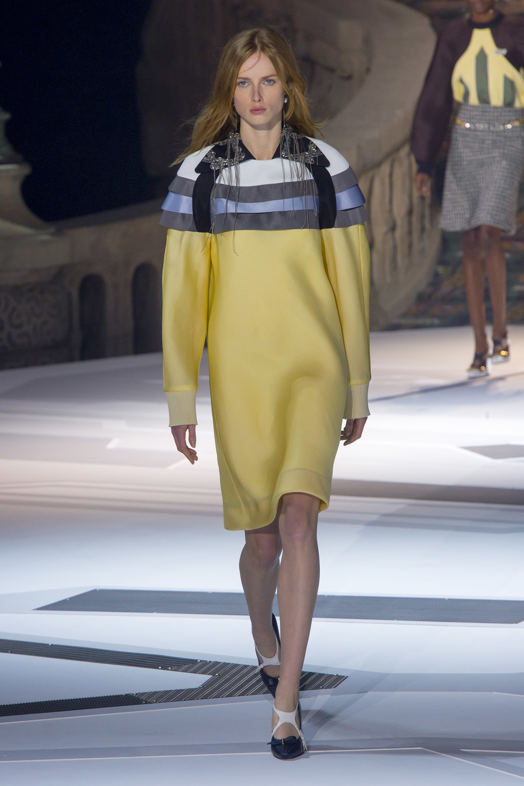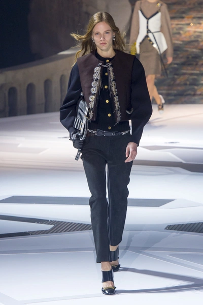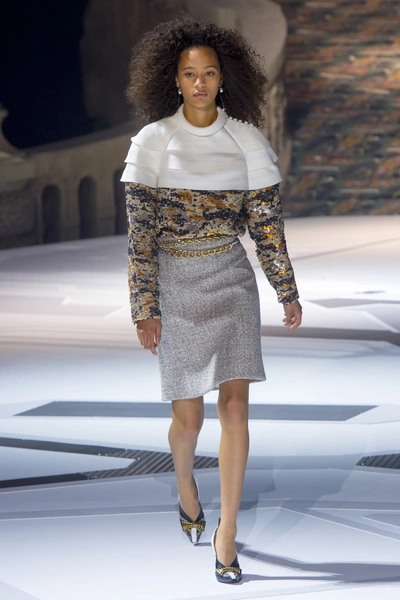 По традиции последним показом Недели моды в Париже стал показ новой коллекции Louis Vuitton. Еще одна традиция — локация шоу — ни много ни мало, а сам Лувр. В октябре дефиле прошло в Pavillon de l'Horloge, история которого насчитывает уже четыре с лишним века, на этот раз — во дворе Cour Lefuel, превращенного на время модного действа, насколько это вообще возможно в стенах Лувра, в космический корабль.