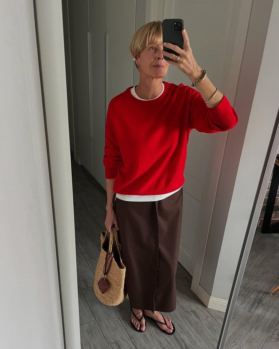 Наблюдая за инфлюенсерами, легко заметить: именно красный джемпер в этом сезоне стал новой базой, вокруг которой выстраивается весь образ — от джинсов до строгих пальто. Да простят нас бежево-белые модели, но весной 2026 года правит алый, и делать ставку стоит именно на него.