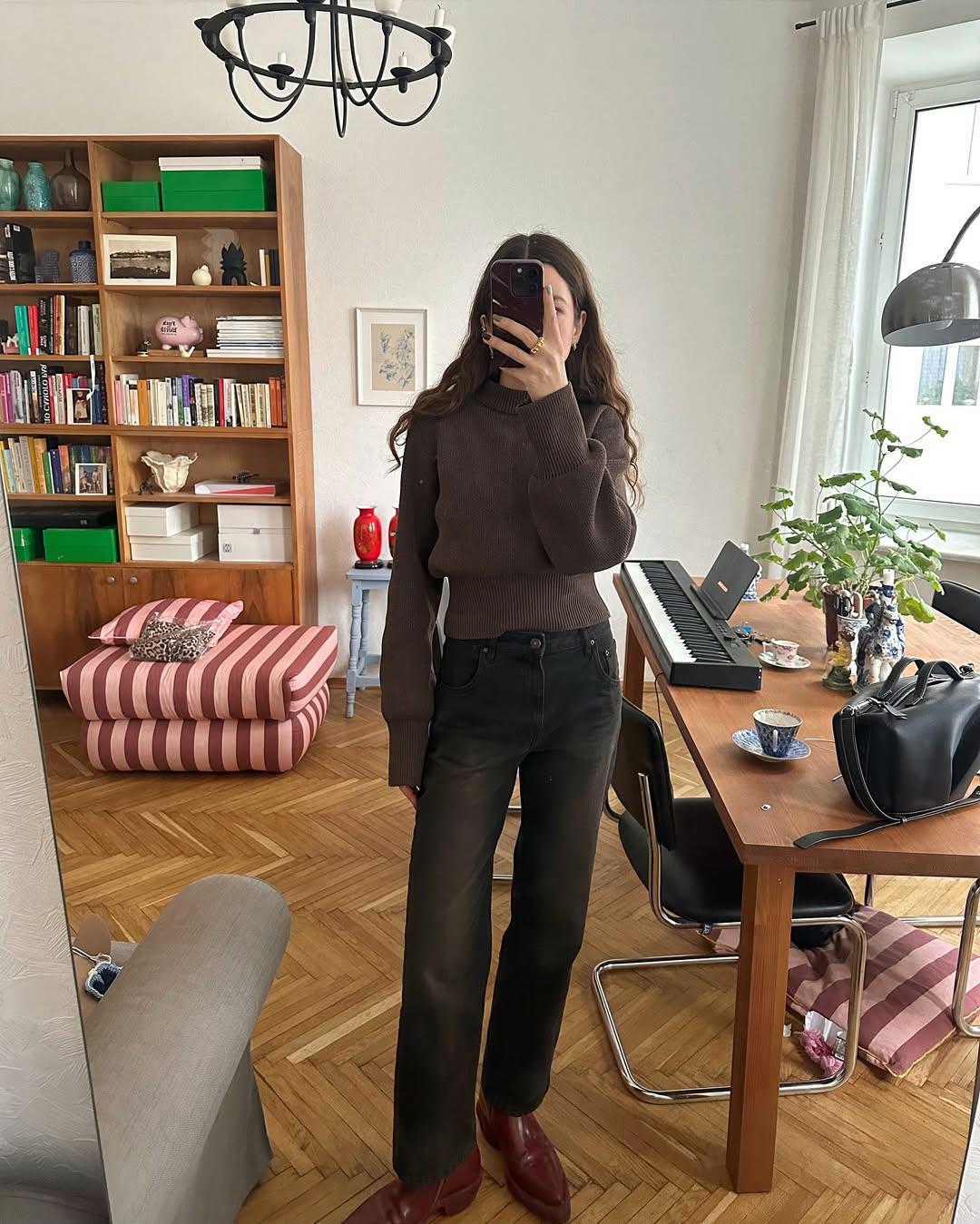 Сочетайте свитер с темным денимом или спокойной меланжевой основой, чтобы он звучал как первая скрипка и работал как модный антидот усталости от серых будней.