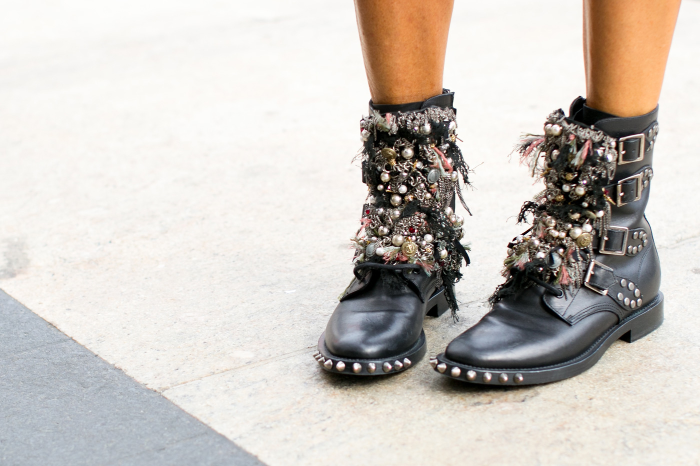 #9. Байкерские ботинки Вовсе не обязательно отдавать сумасшедшие деньги за правильные чоперы с заклепками. Нам нравится доводить вещи до ума своими руками. Берем пример вот с этой рукодельницы – бусины со старых украшений в помощь.