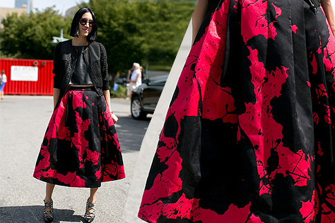 #7. новый new look Если вам так уж хочется пышную юбку, то пусть она будет выглядеть так, как будто ее облили краской. И чтобы избежать сравнений с принцессой, сочетайте такую юбку с косухой.