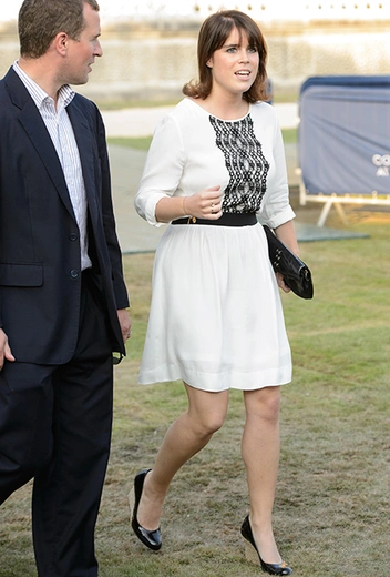 Монаршие особы — тоже люди, и ничто человеческое им не чуждо. Например, взять поносить платье у сестры, как и сделали две дочери британского принца Эндрю — принцесса Беатрис и принцесса Евгения Йоркские. Первой его надела Евгения еще в 2013-ом году. Беатрис в тот же самый наряд облачилась в мае 2014-го года, когда вместе со своей бабушкой, королевой Елизаветой II, отправилась на фестиваль цветов в Сохо.