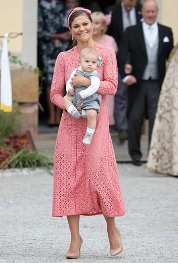 Ливанский король вечерних платьев Эли Сааб горазд шить не только роскошные вечерние платья, блестящие сотнями кристаллов и шуршащие охапками перьев, но и элегантные коктейльные наряды, сполна отвечающие задачам королевского дресс-кода. Это отлично демонстрируют шведская кронпринцесса Виктория и нидерландская королева Максима. Первая выбрала это нежно-розовое миди-платье в октябре 2016-го года для крещения племянника, принца Александра — сына принца Карла Филиппа. Максима надела это платье для официального визита в Португалии годом позже — в октябре 2017-го.
