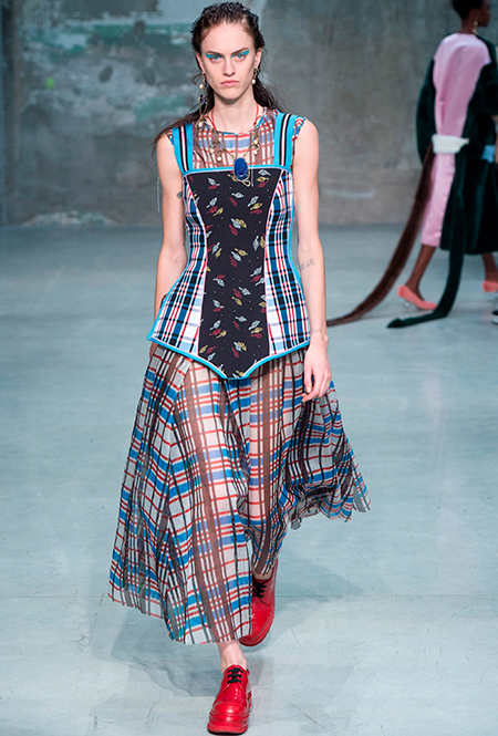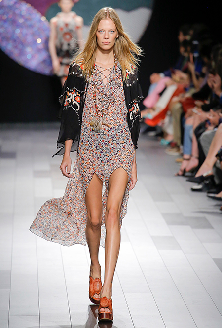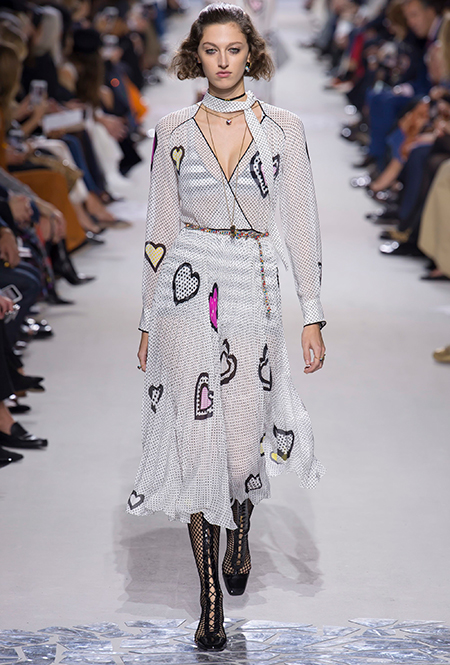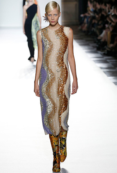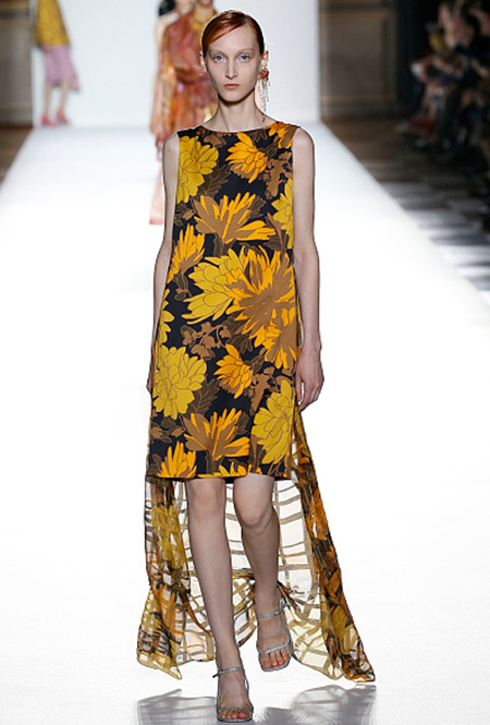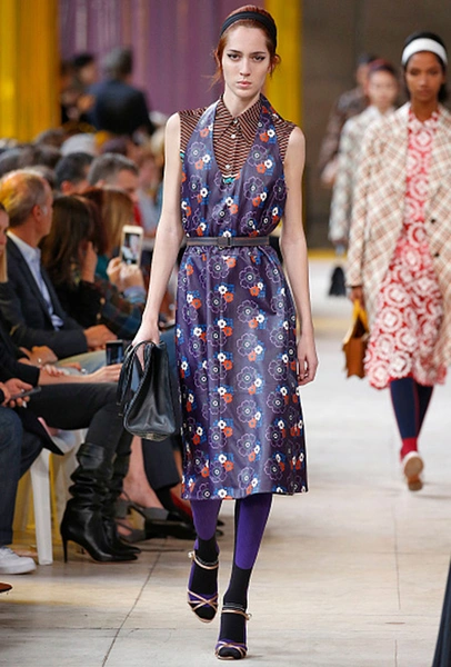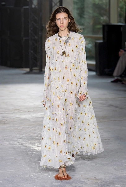 В особом почете — цветы в духе 60-х: отчетливая форма (или вовсе переосмысление цветочного принта в духе поп-арта), много теплых и ярких оттенков. В продолжение темы можно выбрать платье-трапецию, как в эпоху Твигги — что-то похожее мы нашли у Dries Van Noten. Если хотите сочетать цветы с другими рисунками — присмотритесь к геометрии (клетка, полоска) перекликающихся оттенков.
