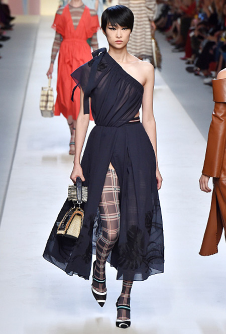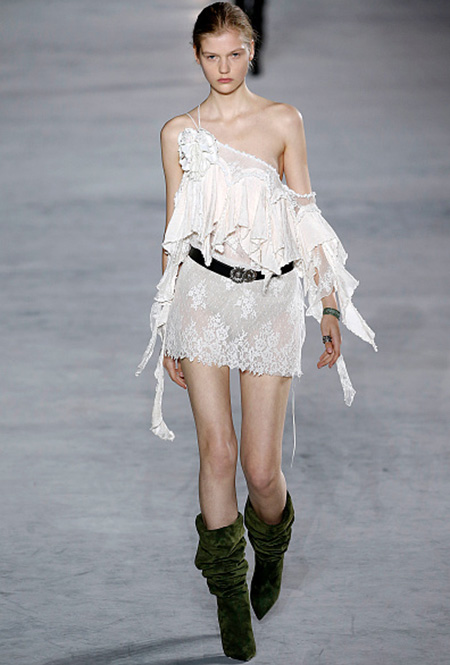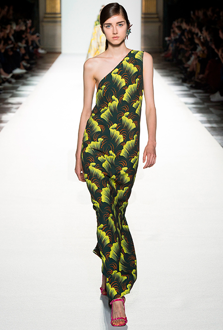 Манипуляции дизайнеров с линией плеч — альтернатива экспериментам с областью декольте (уже не первый сезон подряд). Так что, снова носим платья с одним оголенным плечом. Второй рукав может быть длинным или присутствовать только в виде лямки, как у Saint Laurent. У такого кроя есть один, но очень весомый бонус: он скрадывает широкие плечи.