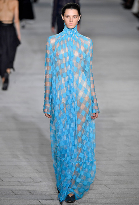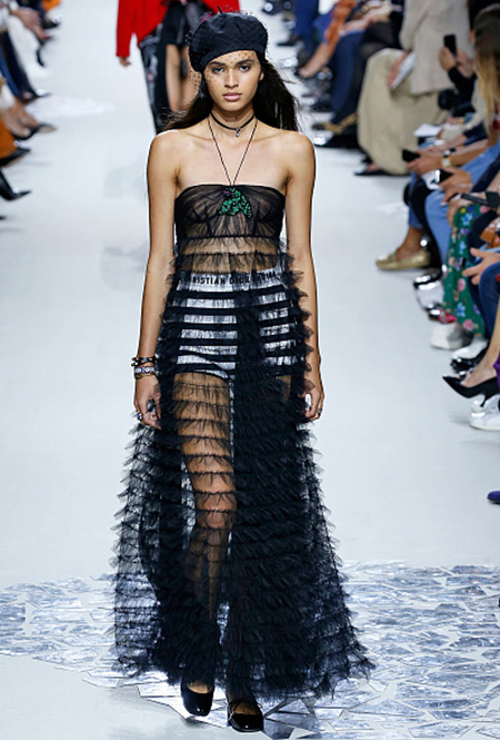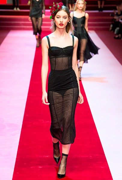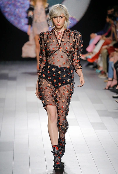 Смелый прозрачный наряд, если позволяет повод и погода, можно надеть на боди или кроп-топ с шортами (в тон платью или телесными). Если нет, то спасением платья станет удлиненный джемпер. Многослойные варианты, в которых прозрачное платье надето на футболку или блузу, сегодня отошли на второй план, захватив с собой любой активный декор: самым актуальным решением будет самое простое.