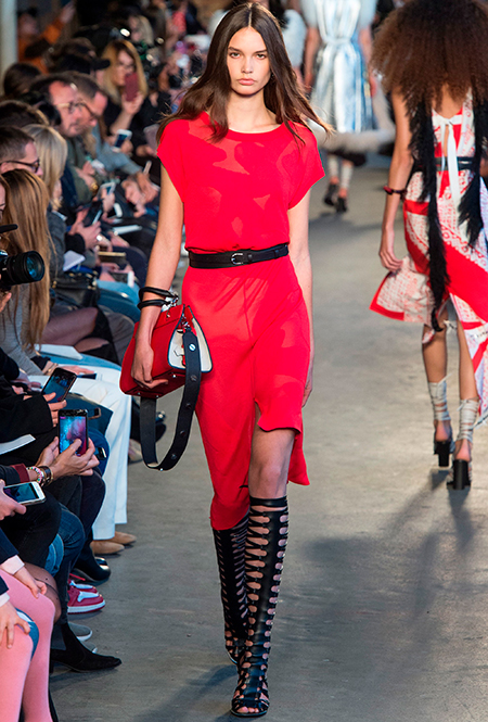 Эффектный strong red, побивший все рекорды популярности прошлой осенью, не выйдет из моды и теперь. Если все яркое — ваш конек, пробуйте сочетать красное платье с контрастными аксессуарами, например, сумкой насыщенного лимонного или ультрамаринового цвета. В повседневных вариантах избегайте слишком откровенных и приталенных фасонов, потому что красный и без того магнетизирует взгляды прохожих.