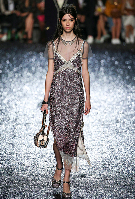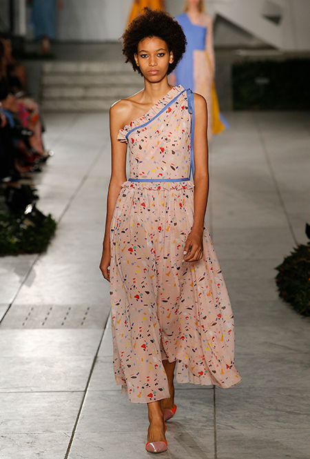 Нежные приглушенные тона, будто с пейзажей Моне, — главный тренд этого сезона. Особенно утонченно эта палитра выглядит на летящих полупрозрачных платьях, как у Luisa Beccaria. Впрочем, и полуспортивные, и торжественные модели отлично смотрятся в такой «невинной пастельной интерпретации». Если не знаете, как миксовать — подбирайте остальные детали образа в той же гамме.